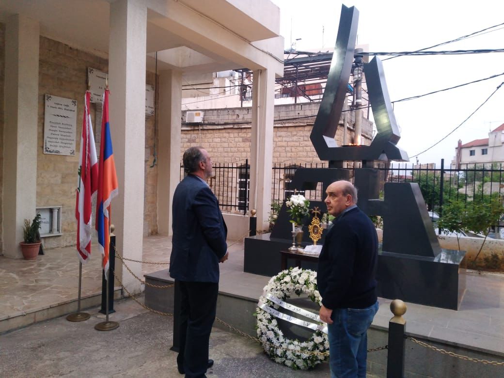 وضع وزير الصناعة جورج بوشكيان ثلاثة أكاليل من الزهر على النصب التذكاريّة للإبادة الأرمنية في كلّ من عنجر وزحلة وبكفيا، وسط مسيرات أحياها أبناء الطائفة الارمنية في المنطقة احياءً لذكرى الرابع والعشرين من نيسان.