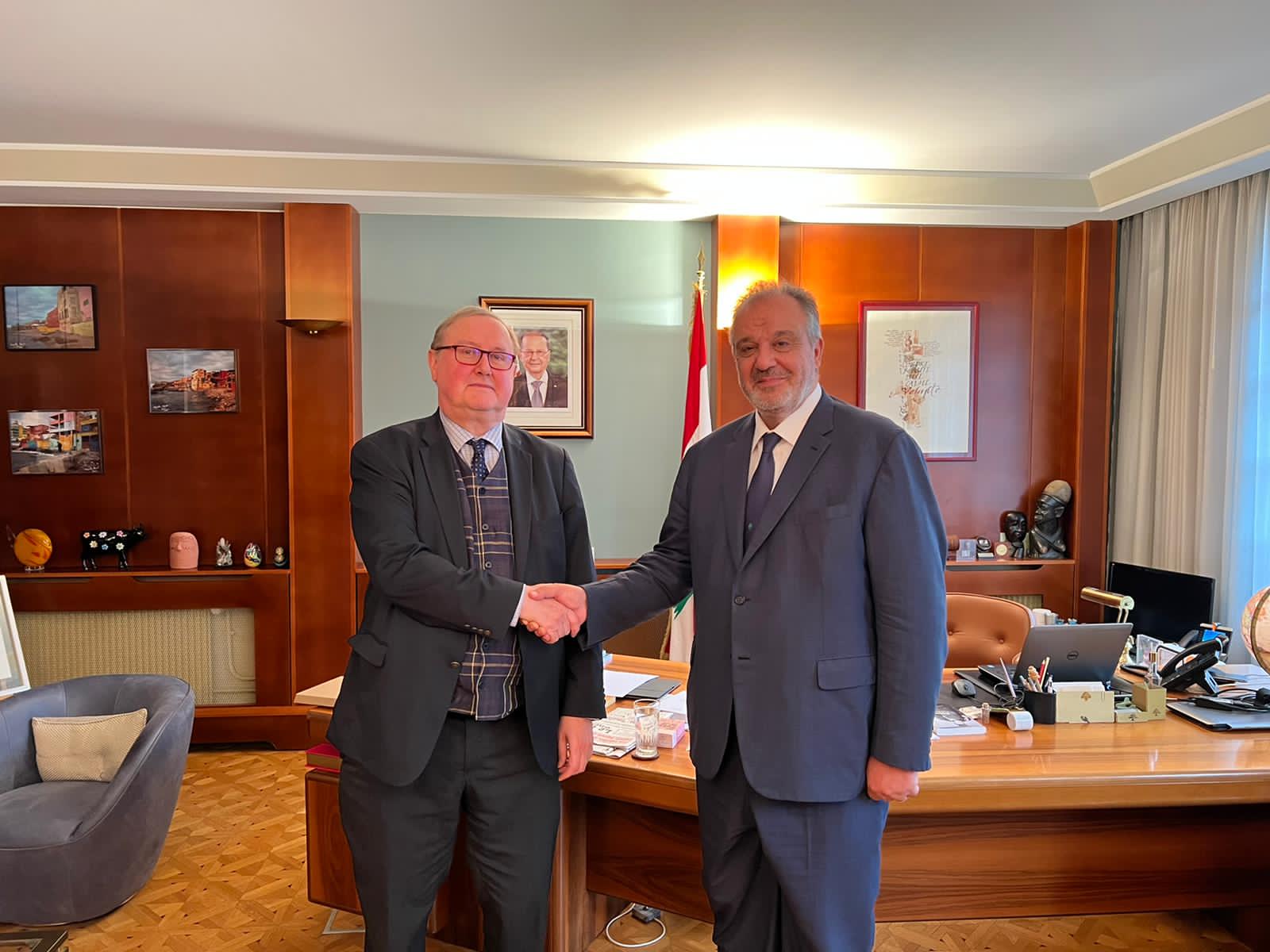 شكر بوشكيان دوكان على وقوف فرنسا وأوروبا والمجتمع الدولي الى جانب لبنان، وأثنى على دور دوكان بهذا الخصوص، واهتمامه بلبنان الذي تجلى بزياراته المتكررة إلى بيروت للمساعدة.
