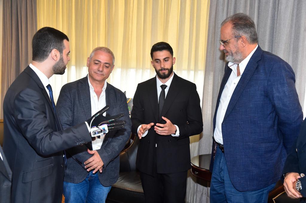 استقبل وزير الصناعة في حكومة تصريف الأعمال النائب جورج بوشكيان، في حضور رئيس الهيئة التنفيذية في جمعية " انجازات البحوث الصناعية-لبنان" IRALEB عضو مجلس إدارة جمعية الصناعيين اللبنانيين المهندس زياد الشماس المخترعَين سمير الياس ووسيم عمران. وهنّأهما على "الابتكار الذي عرضاه في البرنامج التلفزيوني صار الوقت. وهو كناية عن كفوف محهّزة الكترونياً للعميان والصمّ والبكم تخوّلهم نقل طلباتهم والتواصل مع الآخرين عبر الهاتف النقال."