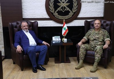 05 تشرين الأول 2022 استقبل قائد الجيش العماد جوزاف عون في مكتبه في اليرزة وزير الصناعة في حكومة تصريف الاعمال النائب جورج بوشكيان، وتناول البحث الأوضاع العامة.